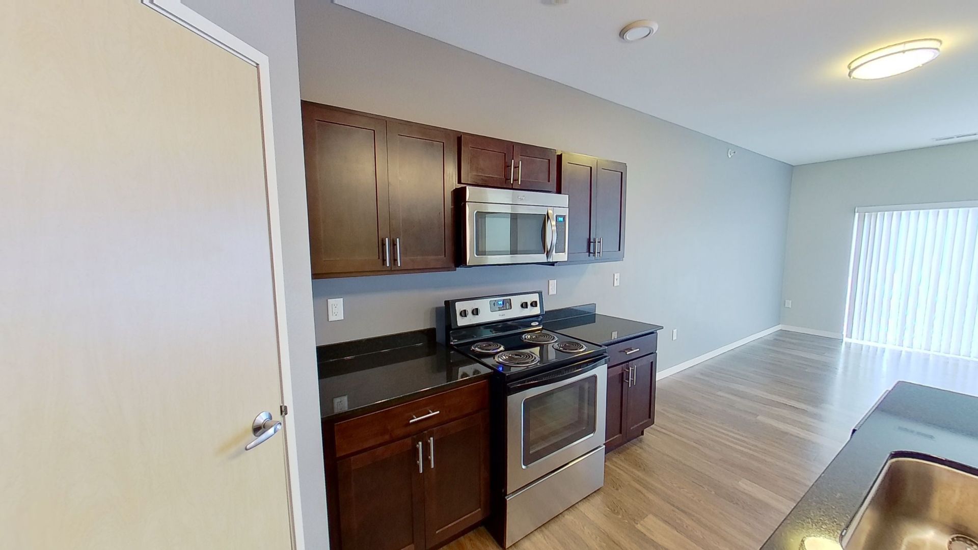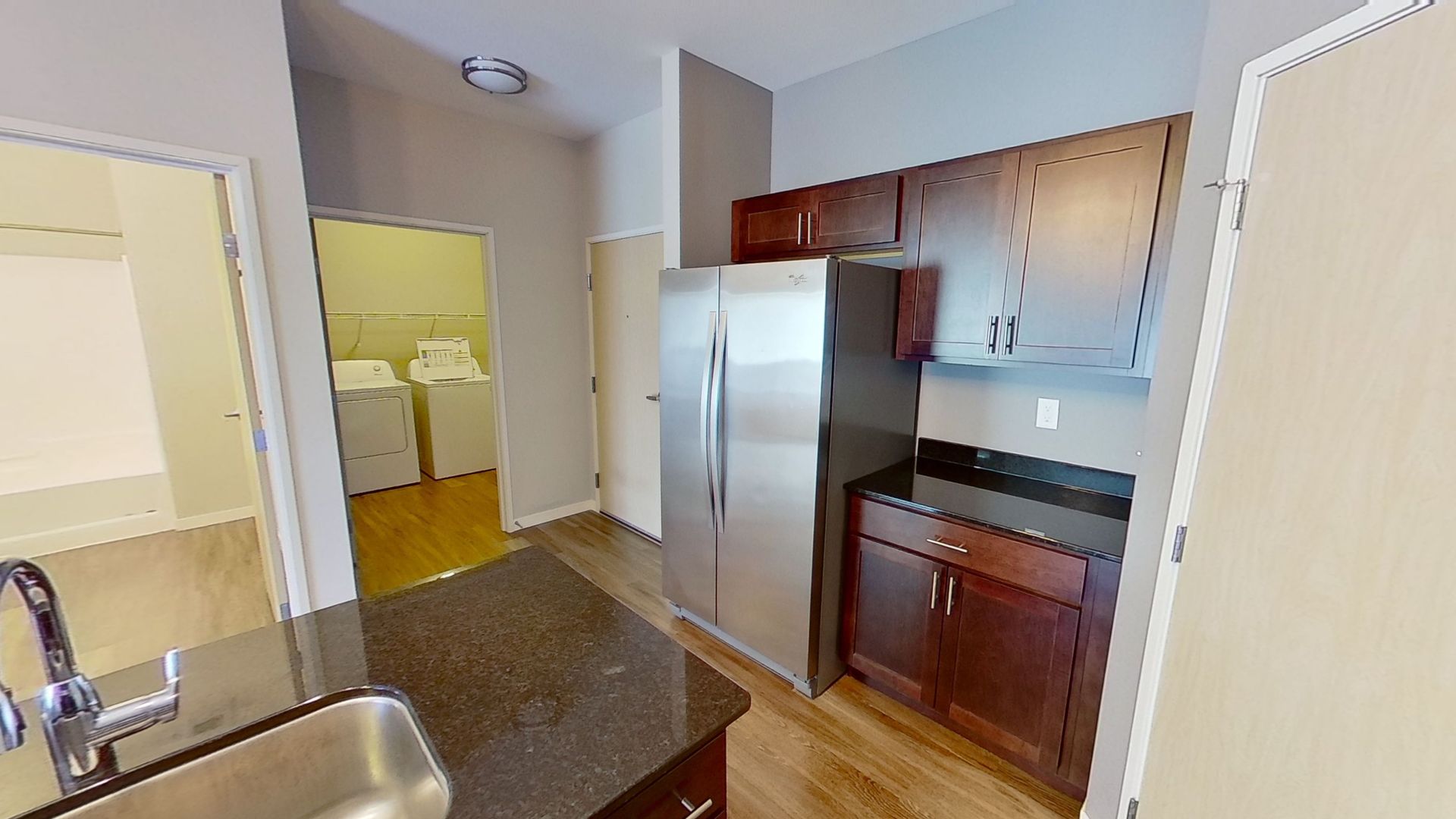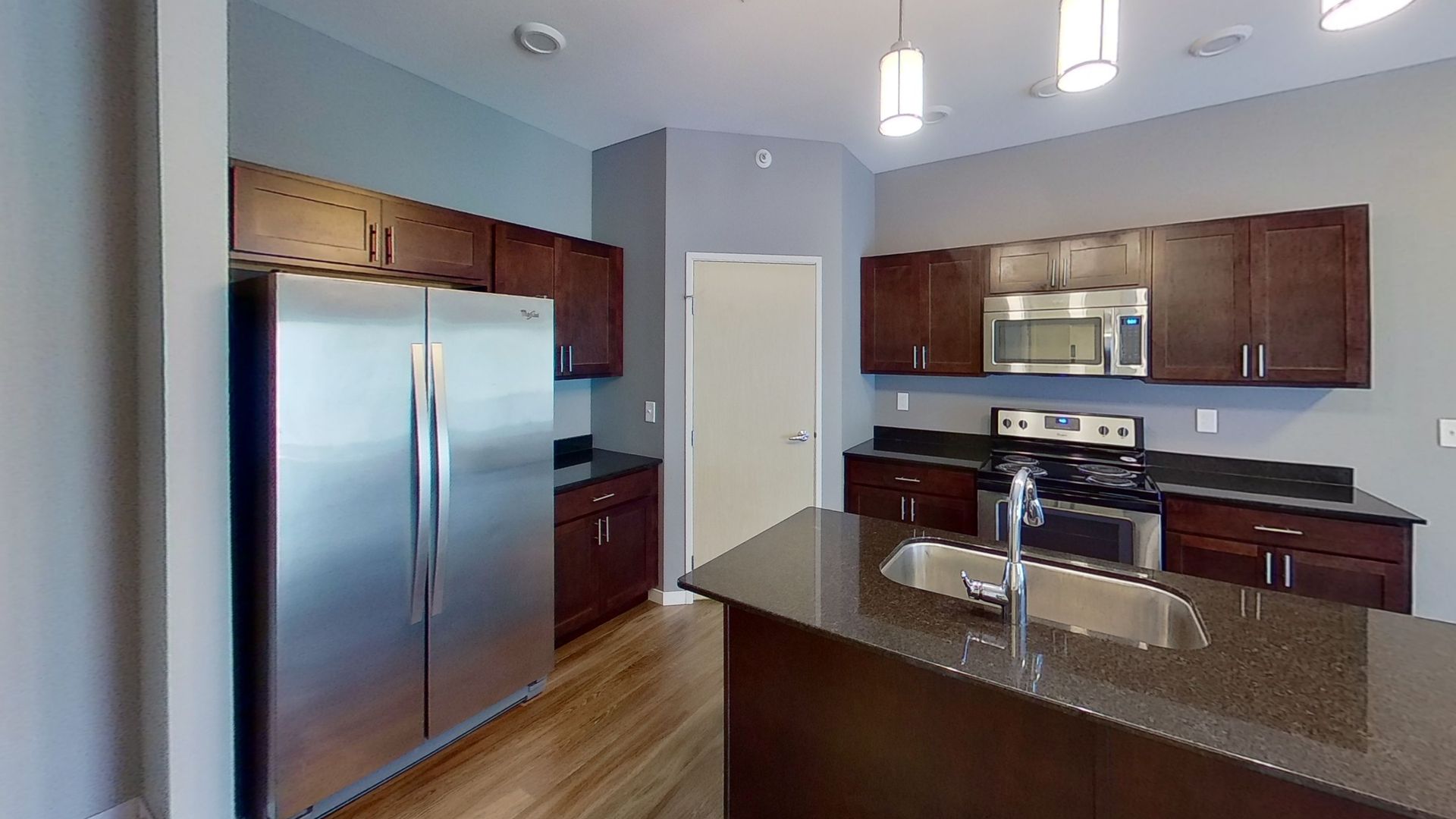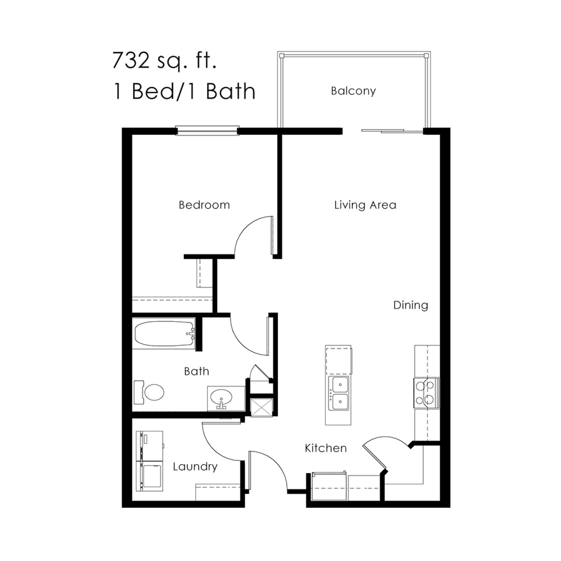 This 1 bed/1 bath apartment, features 732 sq ft of living space. The kitchen features all stainless steel appliances along with pull down faucet, and extra large sink situated on a center island. Also includes a corner pantry adding lots of storage space.