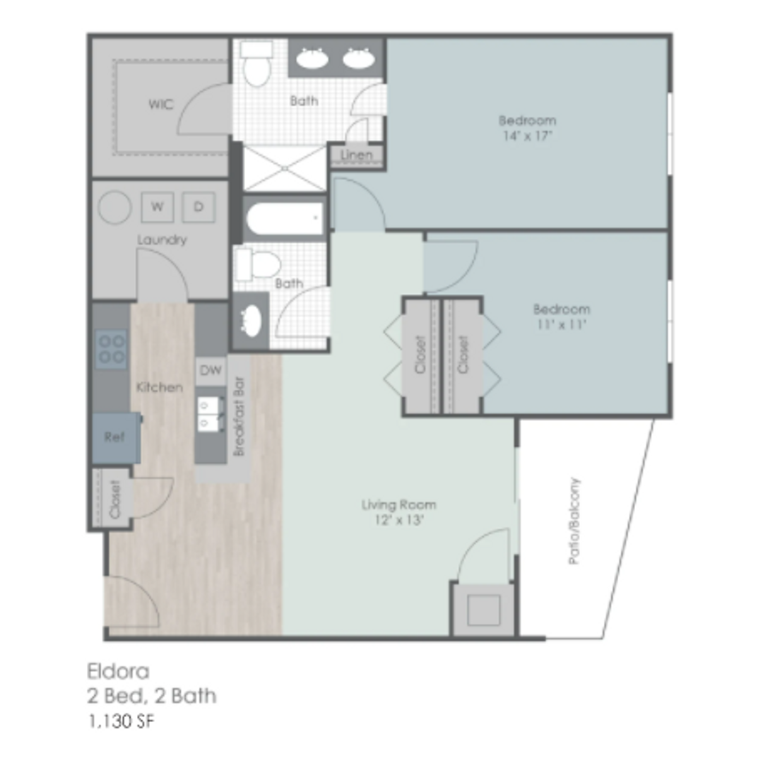 Each of our apartment homes feature an open concept floor plan that is perfect for entertaining. Our modern interiors feature granite countertops, stainless steel appliances, in-unit laundry and walk-in-closets!
