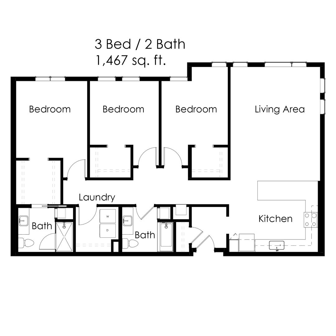Three Bedroom Corner Unit at The Earl Apartments