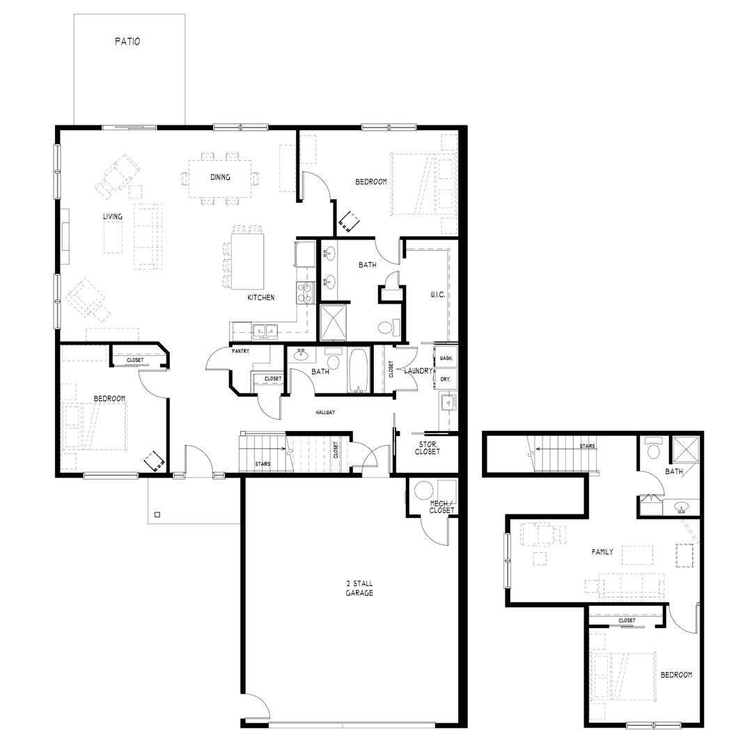 Upstairs you'll find the third bedroom and bath along with the family room. Enjoy an open floor plan in the main living areas and great storage throughout. We are sure you'll find this floor plan great for entertaining and more!