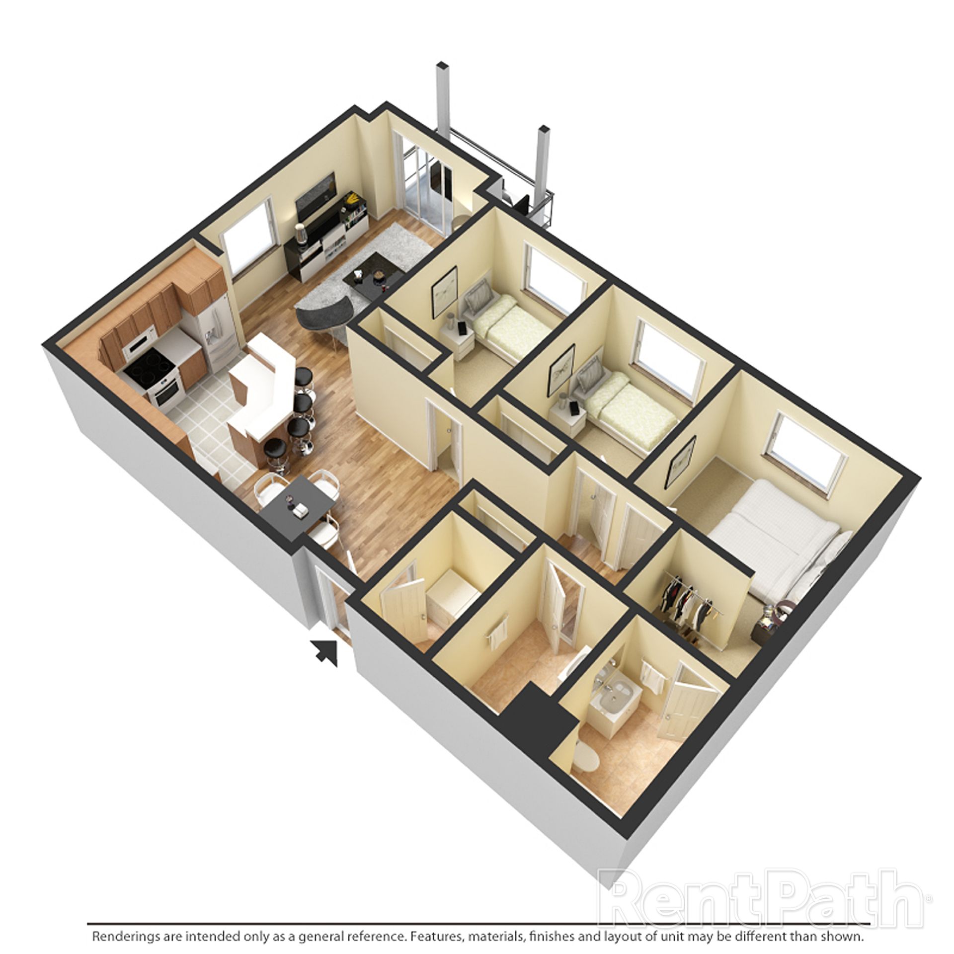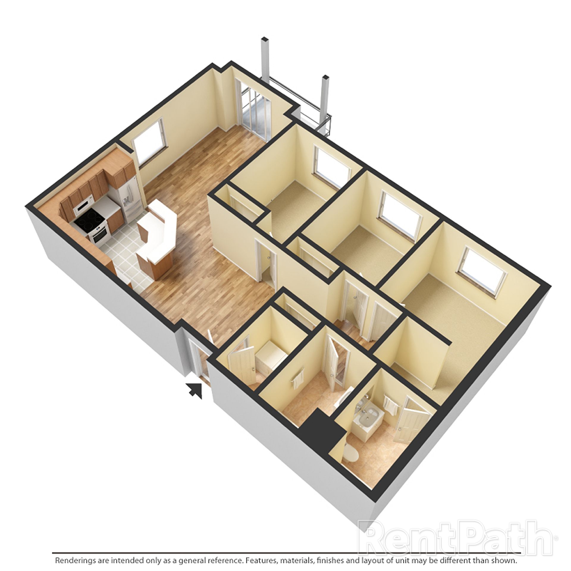 Our spacious floor plans feature: stainless steel appliances, in-unit laundry room with washer and dryer, free WiFi, large garages, and private patios/balconies. Contact our on-site Manager to view your next home today!