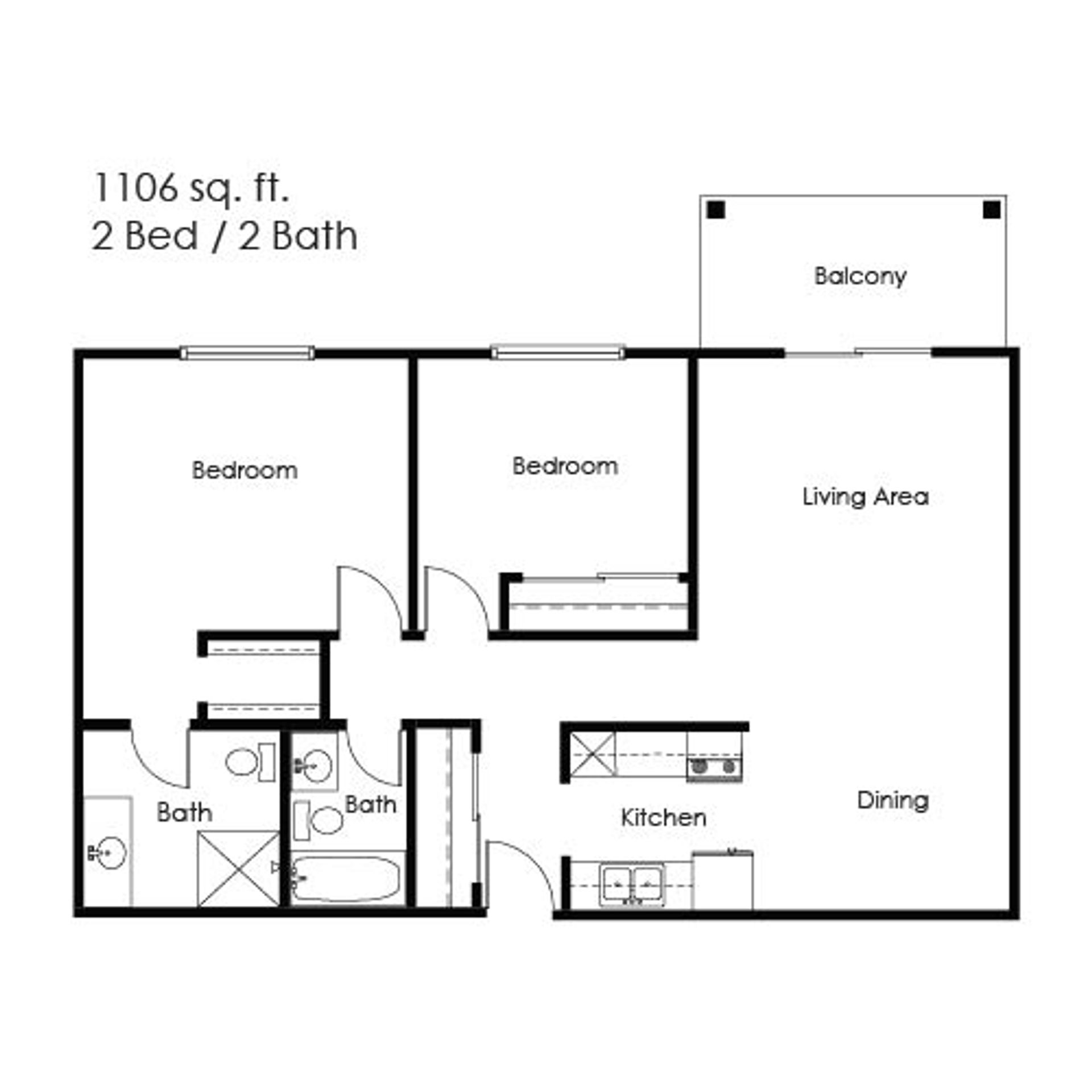 Spacious two bedroom with two bath at Gallery Apartments!