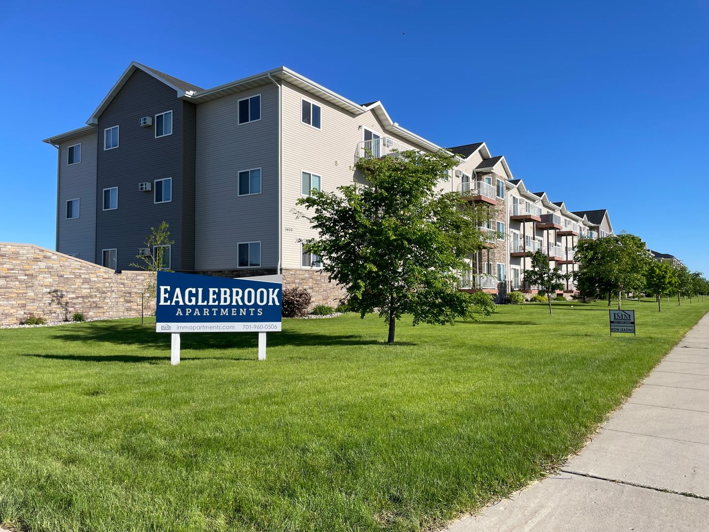 Beautiful Eaglebrook Apartments are conveniently located in south Fargo, off 25th Street and 52nd Avenue. Eaglebook is nestled into a residential neighborhood across from Shanley High School. Apartments feature stainless steel appliances, upgraded cabinetry, washer/dryer in every home, and heated underground parking or garage parking is included. The buildings are controlled access, smoke free and pet friendly. Call today to take a tour and find your new home!
