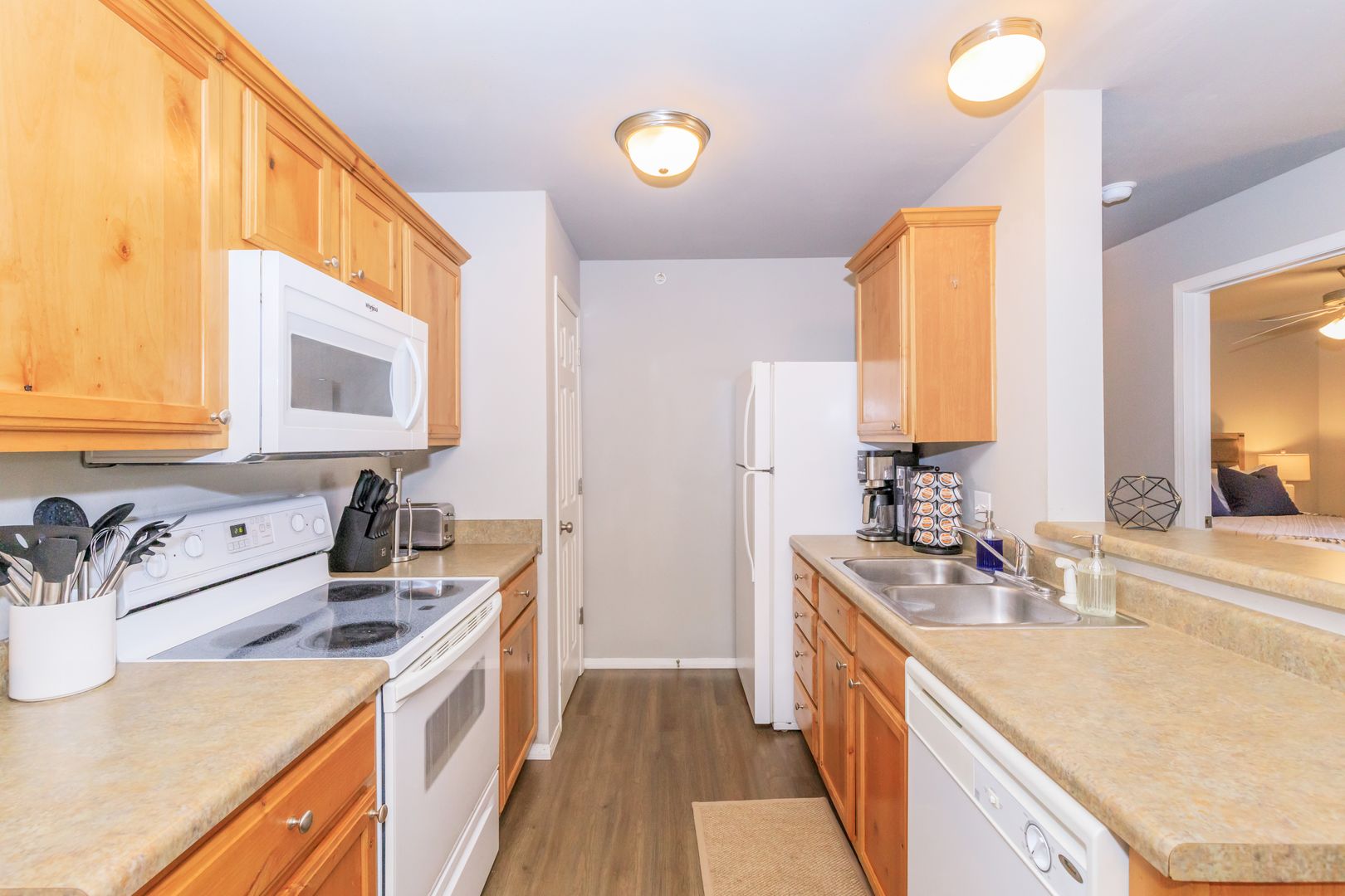 We offer beautiful studio, one, two, three, or four-bedroom apartments for rent, including fully furnished apartments. Each apartment includes a fully equipped kitchen and vinyl wood flooring. Select floor plans have additional storage, quartz countertops, walk-in closets, and washer and dryer connections. A balcony increases your living space and provides a relaxing space to unwind.