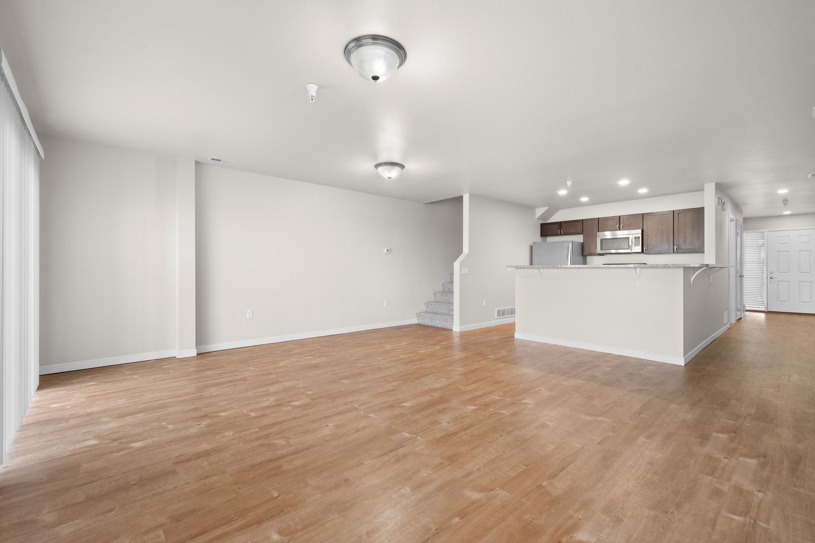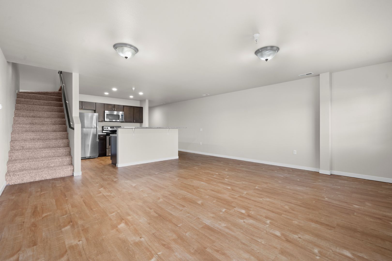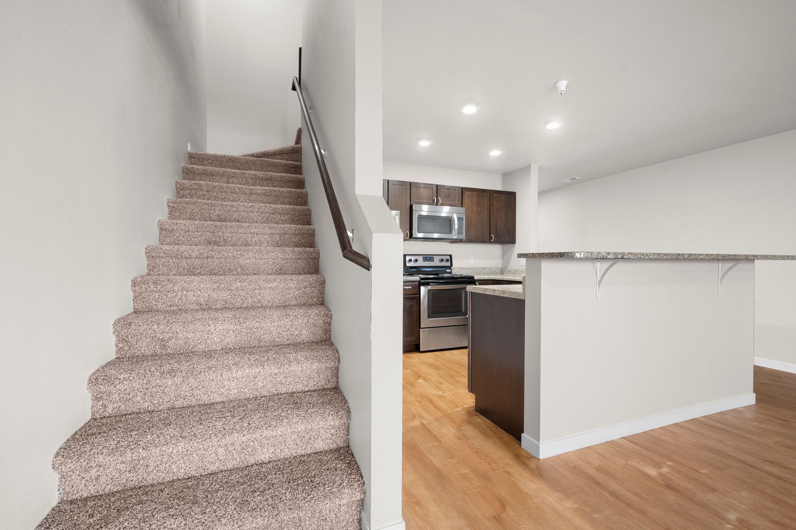 Each of our townhomes feature an open concept floor plan that is perfect for entertaining. Our modern interiors feature granite countertops, stainless steel appliances, in-unit laundry and walk-in-closets!