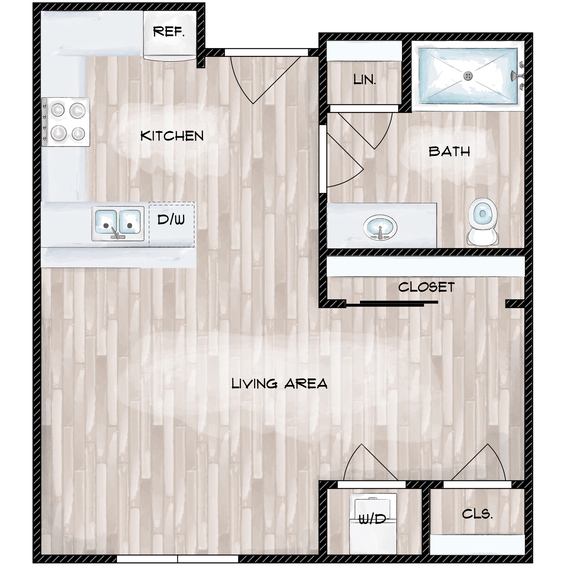 With stylish studio, one, and two-bedroom apartments, we have something for everyone. Relax after a long day on your balcony or patio and make delicious meals in the fully-equipped kitchen. Each of our apartments for rent features a smart thermostat, keyless entry, and washer and dryer connections. Select apartment homes are furnished.