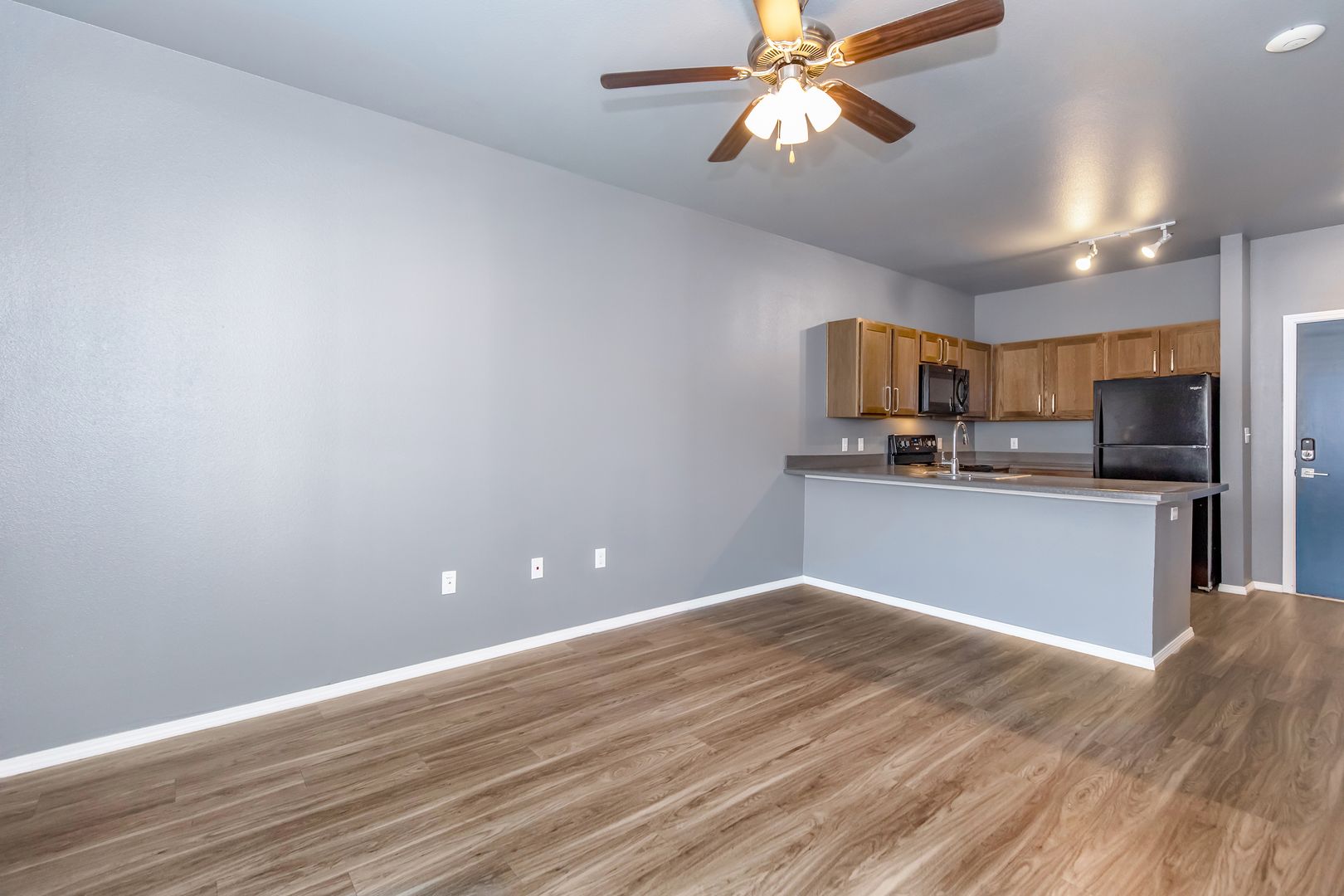 With stylish studio, one, and two-bedroom apartments, we have something for everyone. Relax after a long day on your balcony or patio and make delicious meals in the fully-equipped kitchen. Each of our apartments for rent features a smart thermostat, keyless entry, and washer and dryer connections. Select apartment homes are furnished.