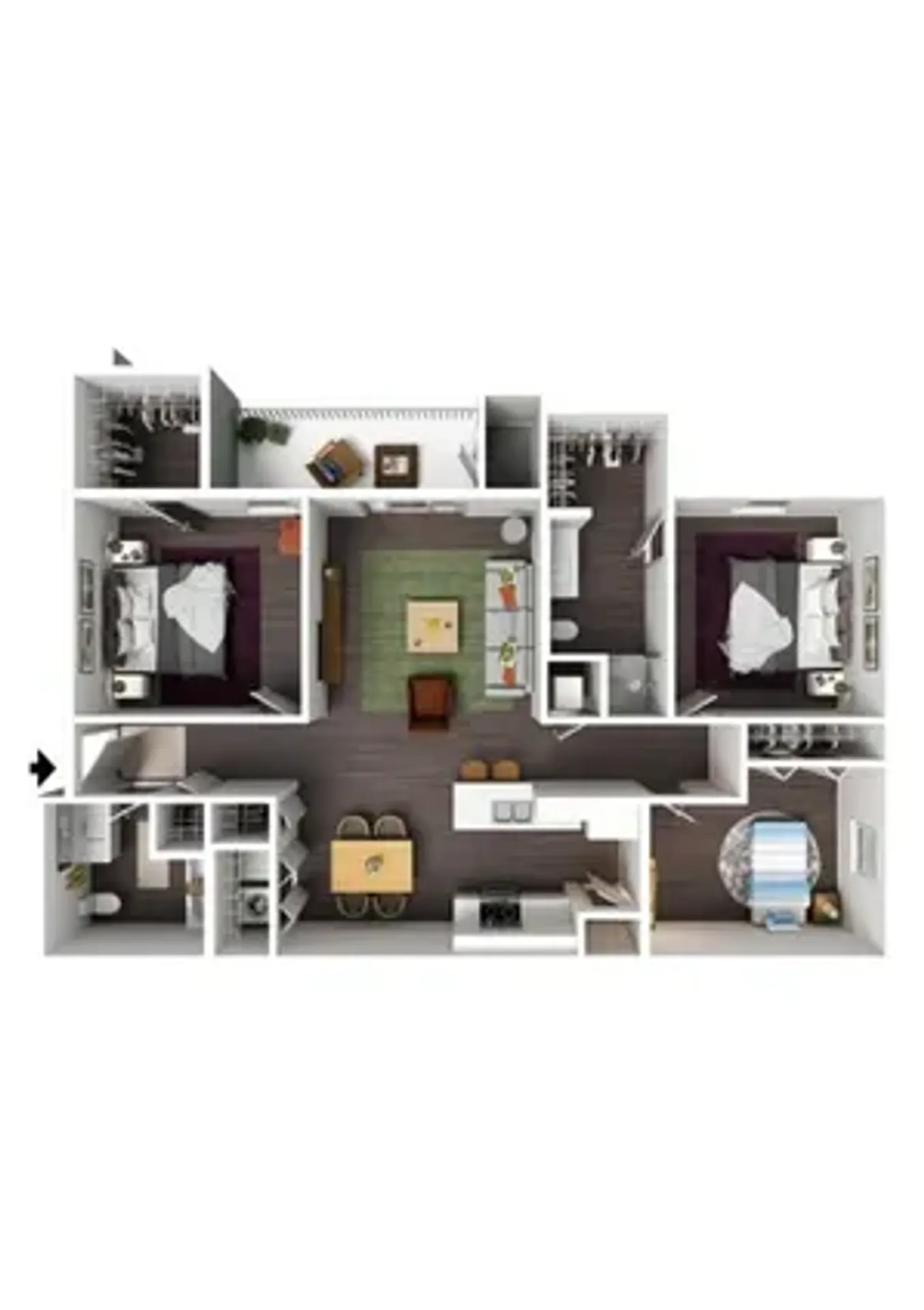 We offer beautiful studio, one, two, three, or four-bedroom apartments for rent, including fully furnished apartments. Each apartment includes a fully equipped kitchen and vinyl wood flooring. Select floor plans have additional storage, quartz countertops, walk-in closets, and washer and dryer connections. A balcony increases your living space and provides a relaxing space to unwind.